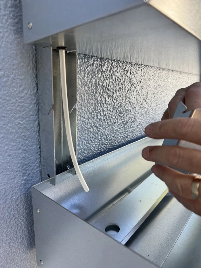 Install rubber grommet and cut tube to 8" install cap and confirm the tube is going into the wall planter.