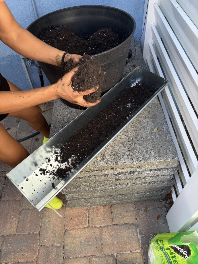 Fill with soil, make sure the soil is about 1 inch below top.
