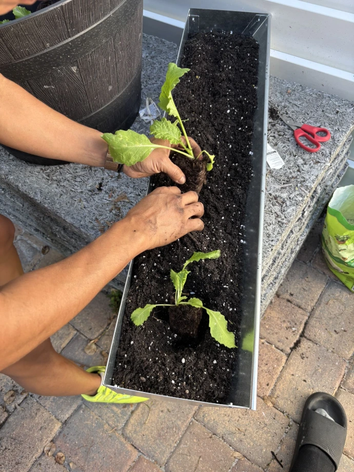 Pack down soil and plant a variety of different herbs and foods!